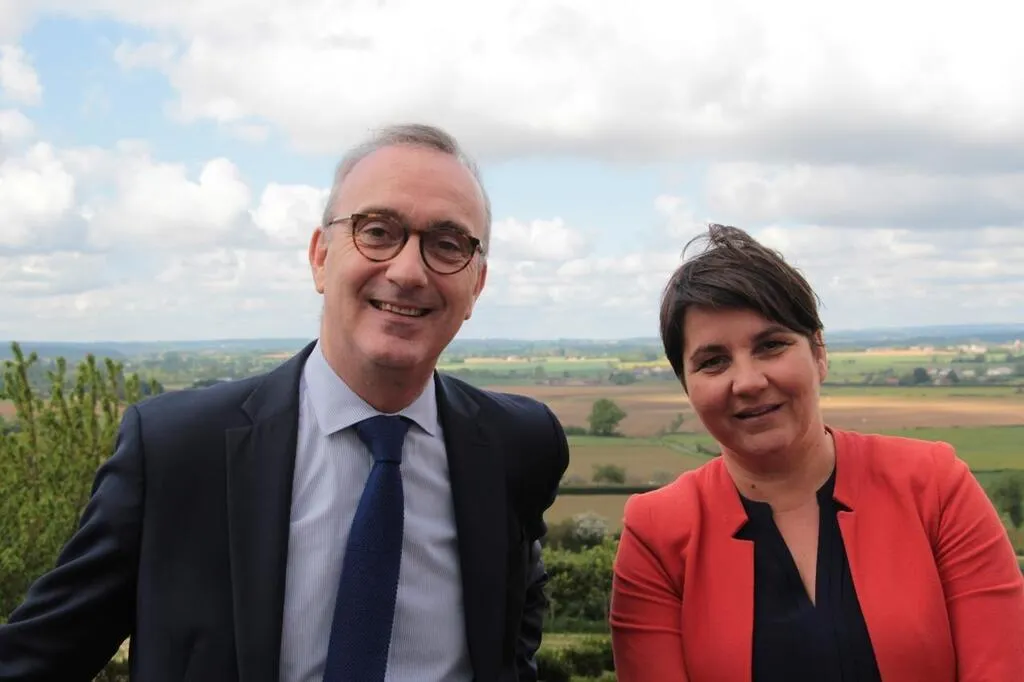 Sur les hauteurs de Ballon-Saint-Mars au nord du Mans, Jean-Carles Grelier (divers droite) se porte candidat aux élections législatives 2022 pour la 5e circonscription de la Sarthe. Avec sa suppléante, Anne Beauchef. © Ouest-France
