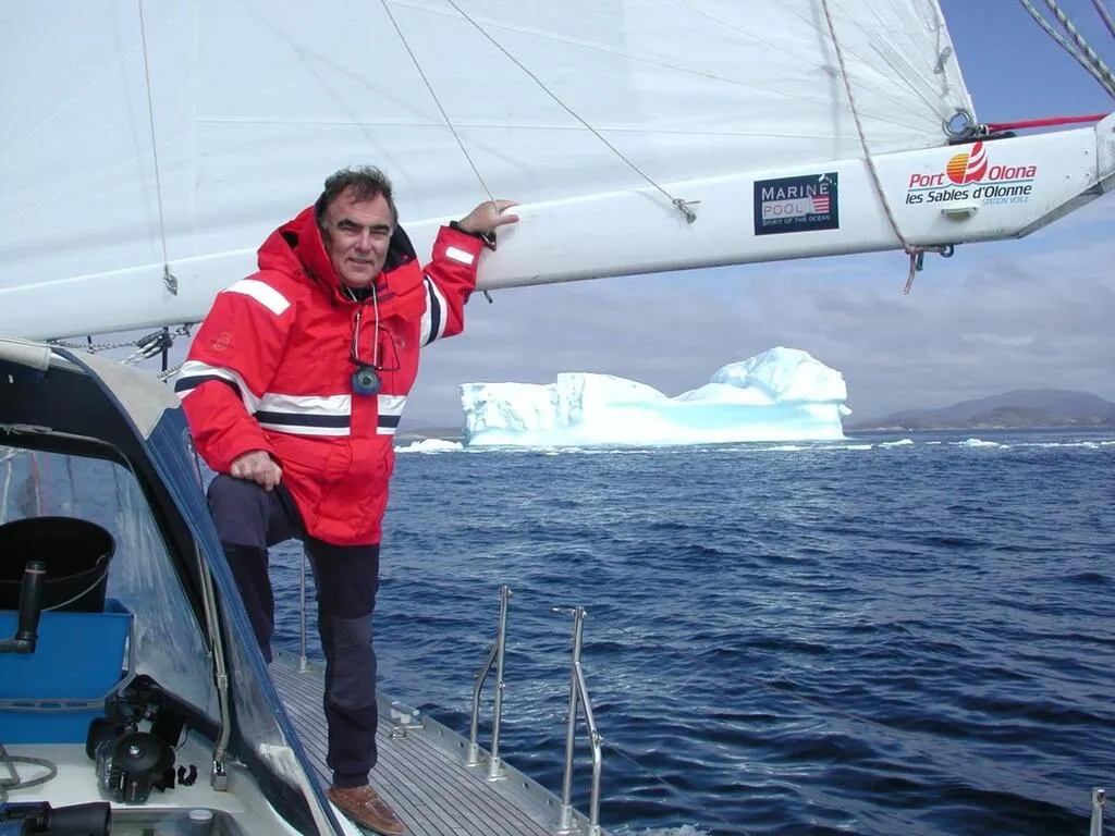 Parmi les nombreuses aventures de Maurice Uguen, beaucoup ont eu lieu au Pôle Nord, ici devant un iceberg au Groenland. © Maurice Uguen