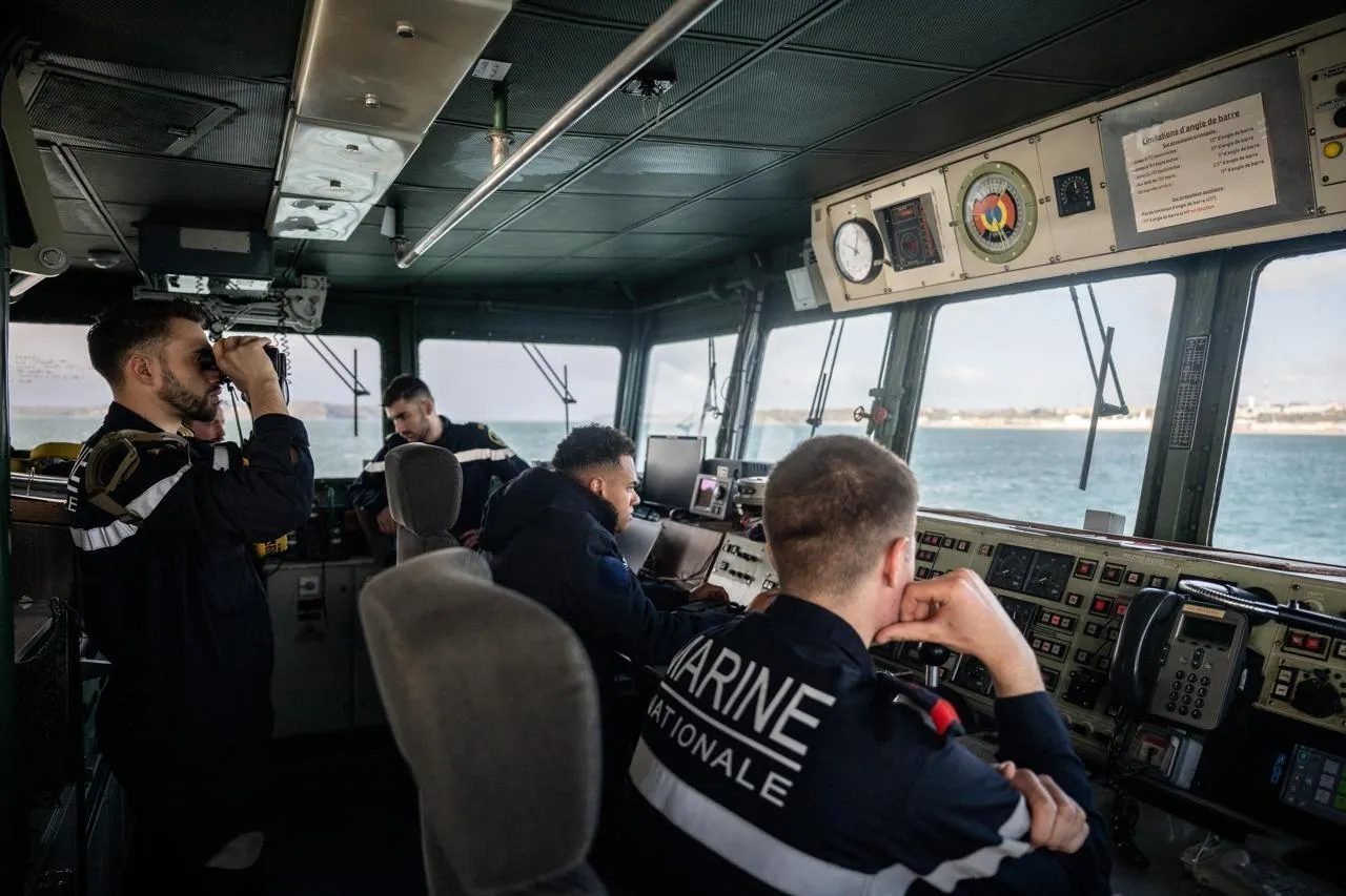À bord de « L’Aigle », chasseur de mines tripartite de la Marine française en rade de Brest (Finistère), le 25 mars 2026. © Guillaume Saligot / Ouest-France