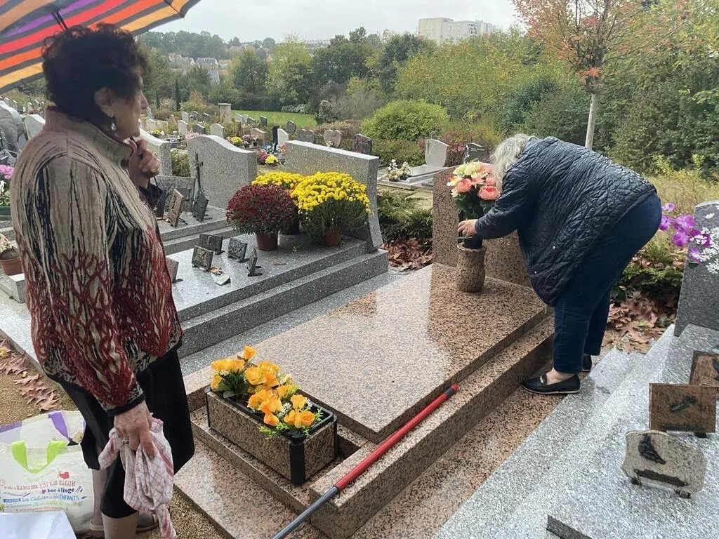 Denise et Joëlle sont venues entretenir la tombe d’un proche au cimetière Les Vignes à Coulaines la veille de la Toussaint. © Le Maine Libre