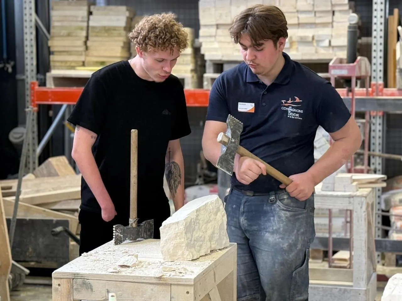 Dans les centres de formation des Compagnons du devoir, ce sont les compagnons eux-mêmes qui transmettent leur savoir-faire technique en atelier aux apprenants et apprenantesÂ