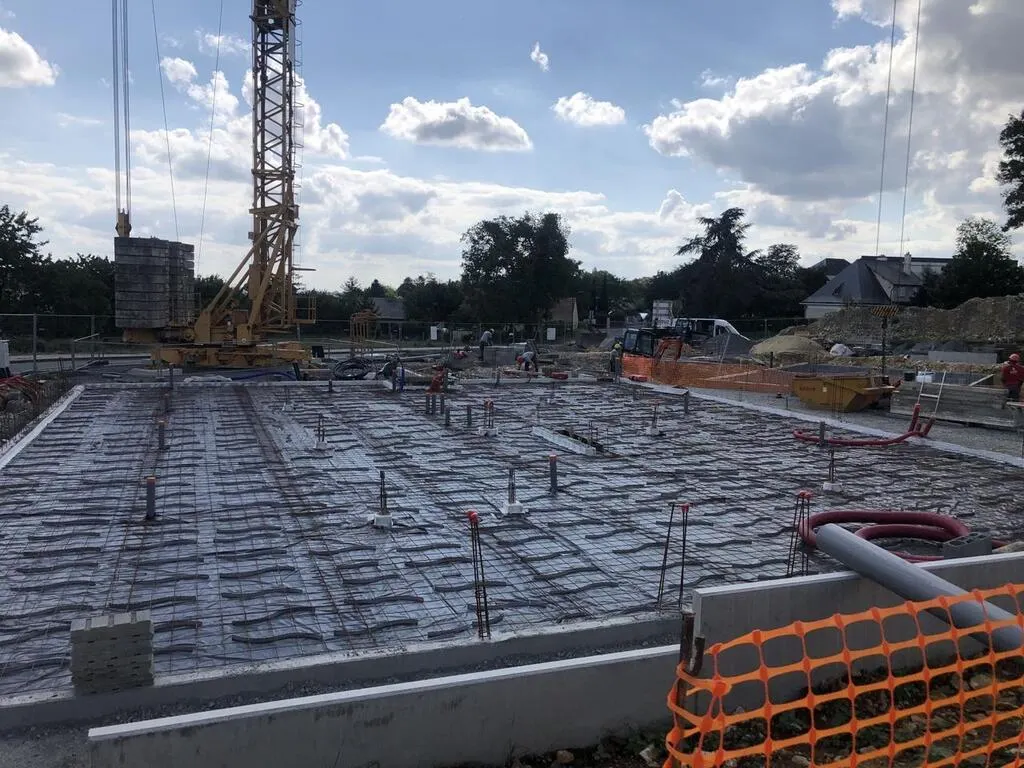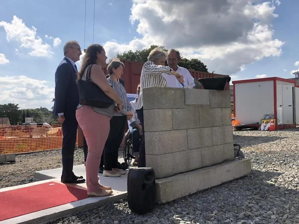 La première pierre (ou presque) de la maison de santé de Loué a été posée par la sous-préfète Véronique Ortet, et Daniel Coudreuse, le président de LBN Communauté. © Ouest-France