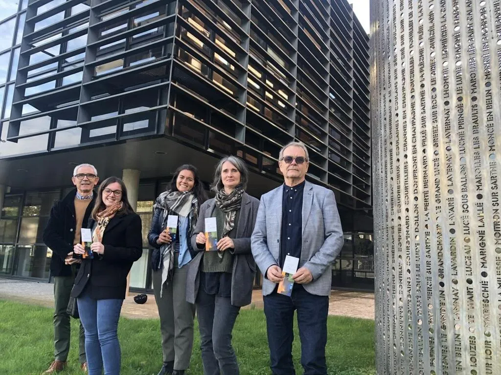 Jean-Louis Lemarié, nouveau président des Petites cités de caractère (à droite), et son équipe, lors de la présentation de "Cités en lumière" aux archives départementales de la Sarthe. © Le Maine Libre