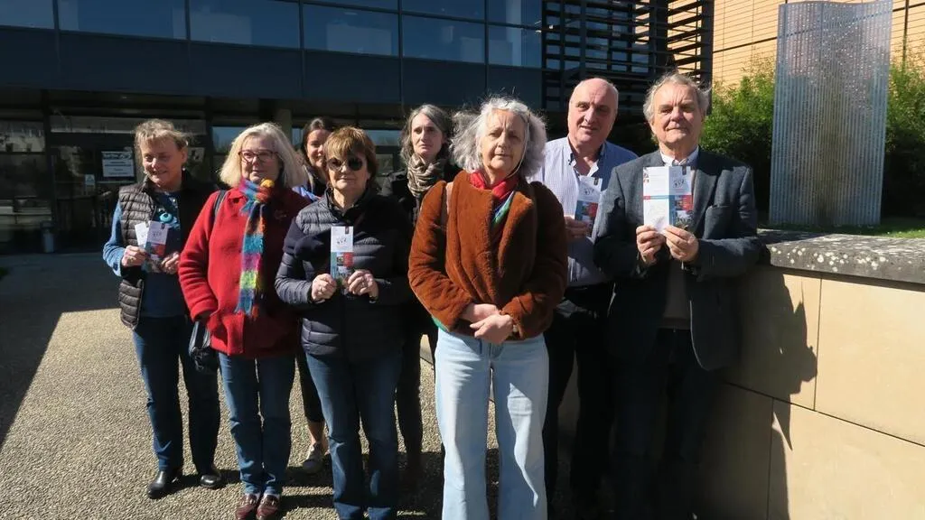 Jean-Louis Lemarié, à droite, président des Petites cités de caractère et maire d’Asnières-sur-Vègre est venu avec des acteurs des communes présenter les dimanches de caractère 2025. © Ouest-France