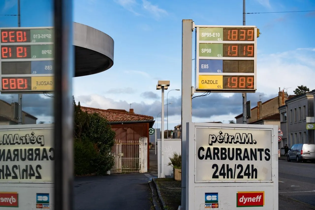 France, Auch, 8 mars 2026. Illustration, station-service, prix des carburants, essence sans plomb et gazole. © JEAN-MARC BARRERE / Hans Lucas via AFP