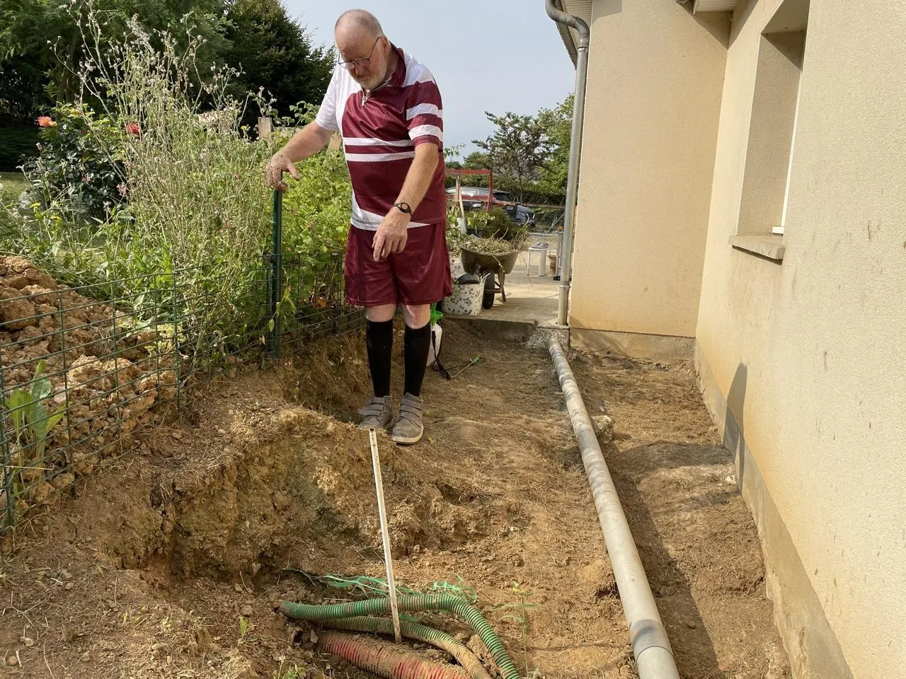 Lundi 18 août 2025, à Loué. Une mousse blanchâtre, retenue par des boudins filtrants, émane de la buse ...