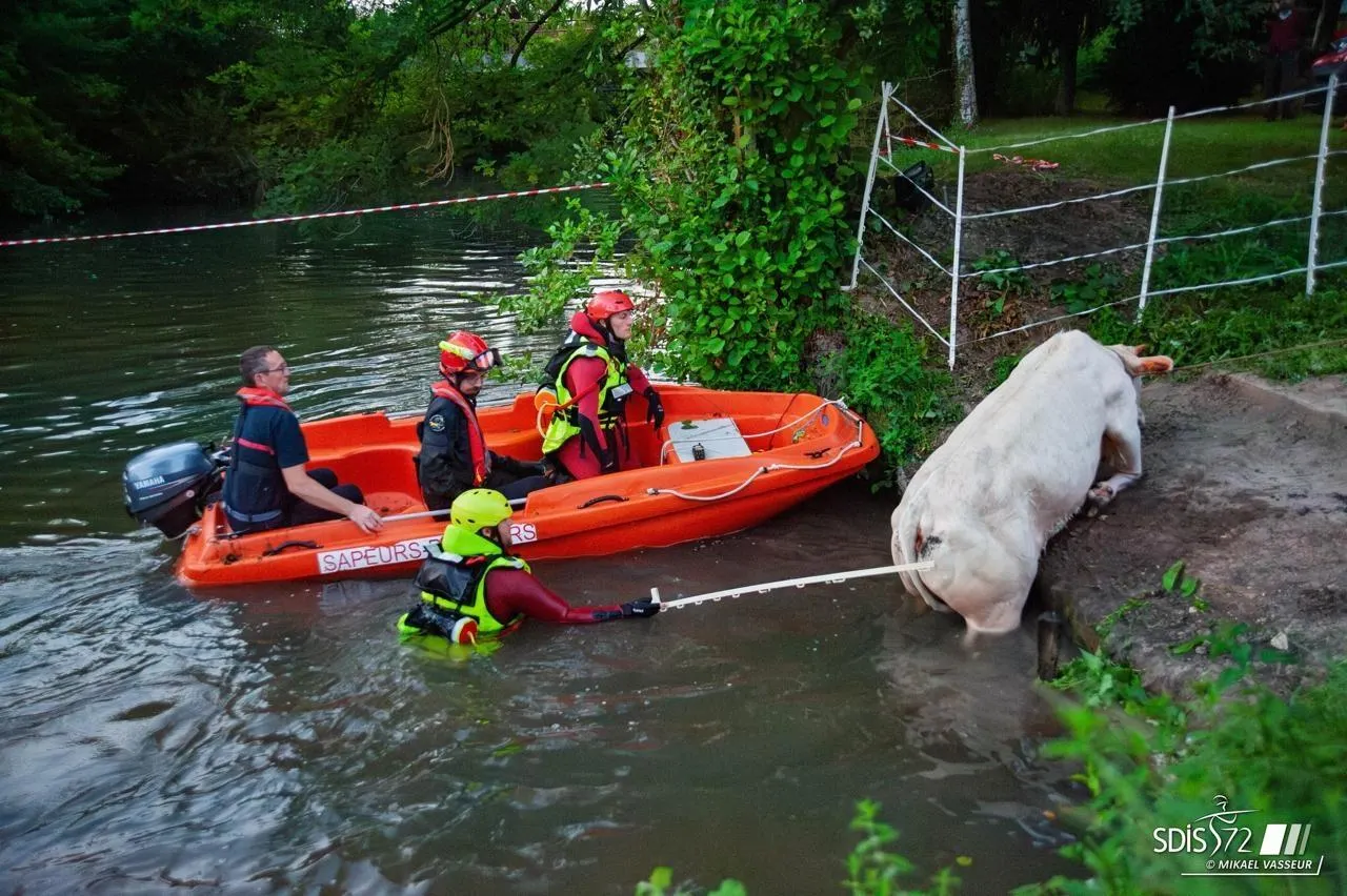 Les sapeurs pompiers de la Sarthe sauvent une jument et une vache... |