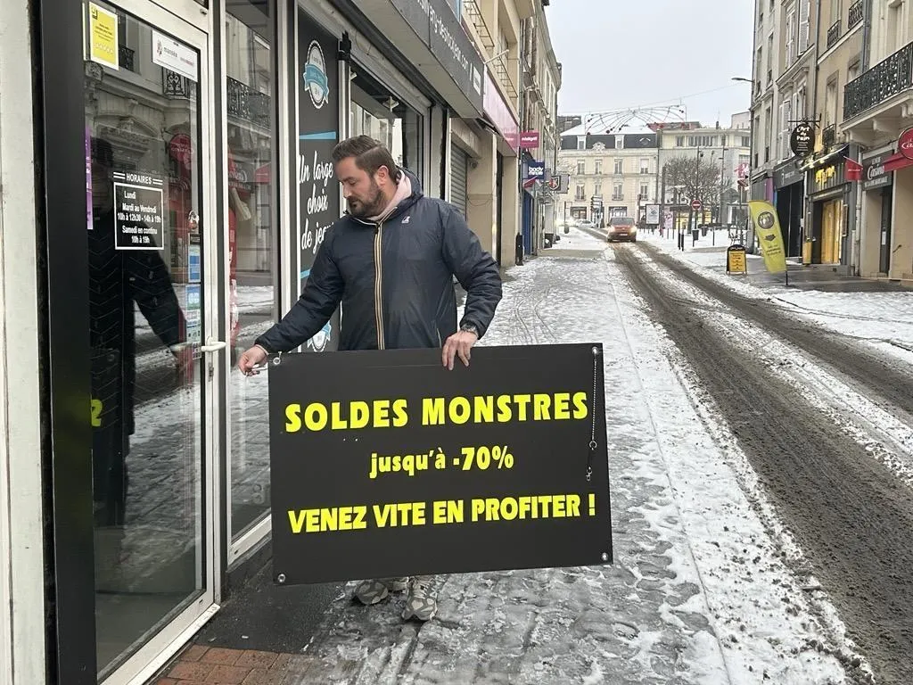 Les soldes ont commencé sous la neige en Sarthe, ce mercredi 7 janvier 2026. © Le Maine Libre