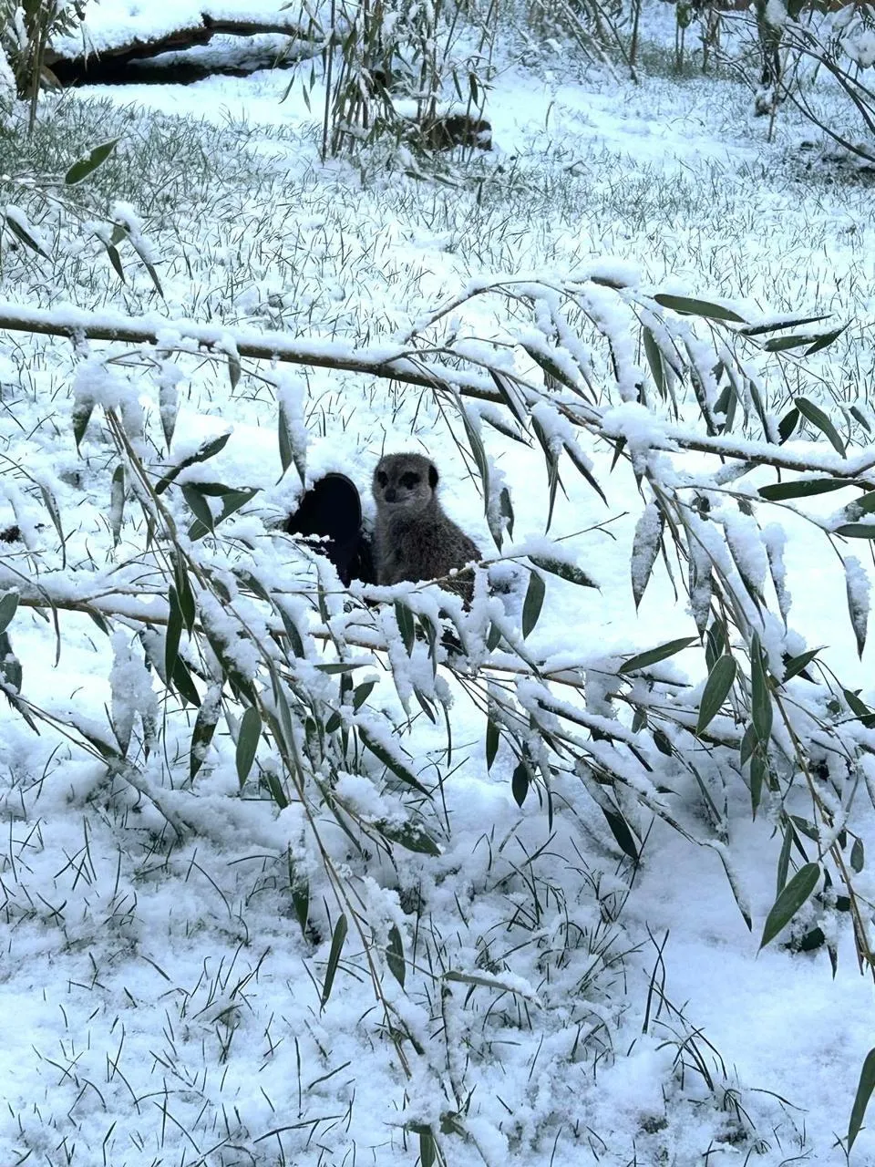 Les suricates du zoo de La Flèche découvrent la neige pour la première fois... |