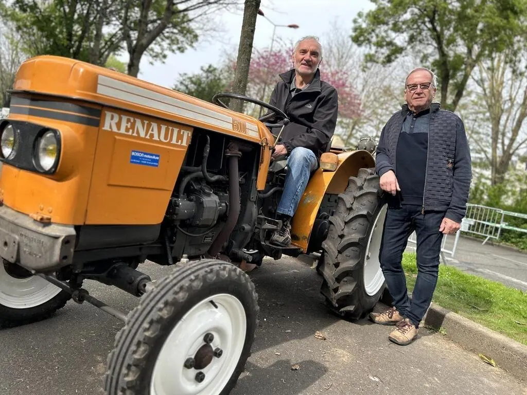 Bernard Jaunay, président de L’Amicale du tracteur Renault, et Michel Chasseray, trésorier. Ils ont présenté un Vigneron 50S lors de la 38e édition des Cinq et deux litres au Mans, dimanche 30 avril. © Ouest-France