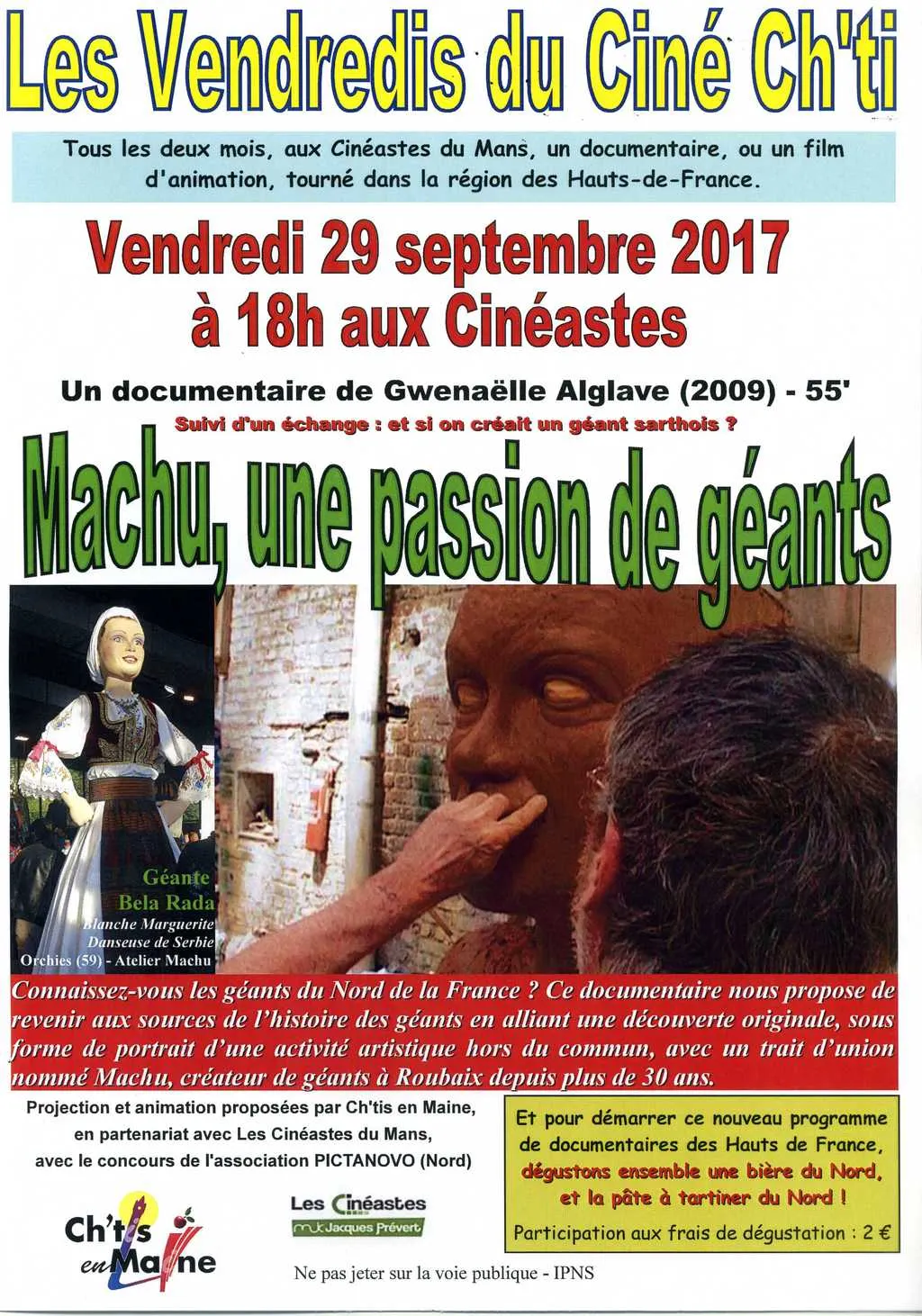 Ce documentaire revient aux sources de l'histoire des géants processionnels du Nord sous forme de portrait d'une activité artistique hors du commun, avec un trait d'union nommé Machu, créateur de géants à Roubaix depuis plus de 30 ans. Ensuite, dégustation de bière et pâte à tartiner du Nord.