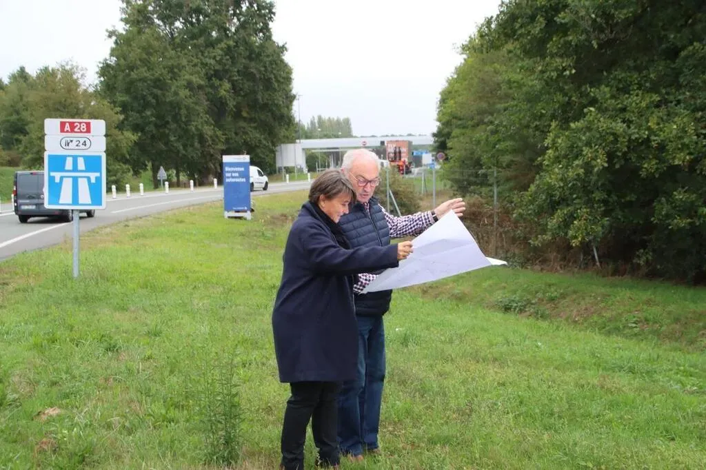 La nouvelle zone d’activité de la communauté de communes du Sud-est manceau se trouve à Saint-Mars-d’Outillé, présentent Céline Fourmy, chargée de développement économique à la communauté de communes, et Alain Brionne, vice-président en charge du développement économique. Elle sera commercialisable fin 2023. © Communauté de communes du Sud-est manceau