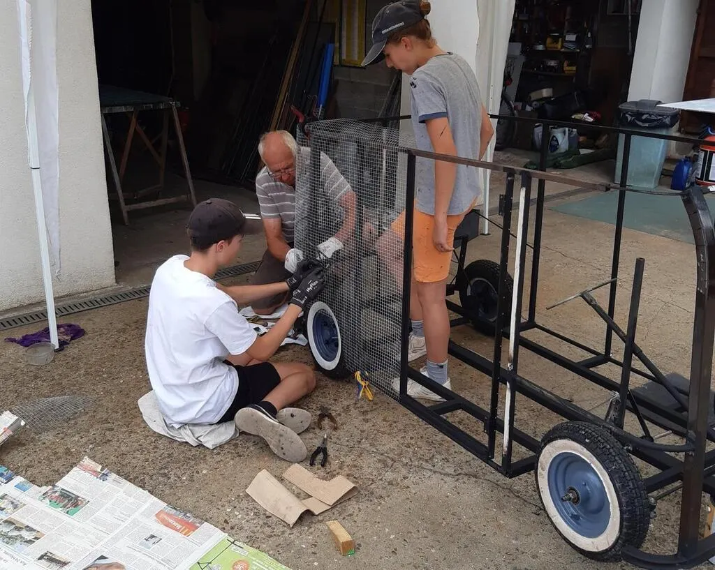 Leur caisse à savon est prête pour la grande course à Crosmières... |