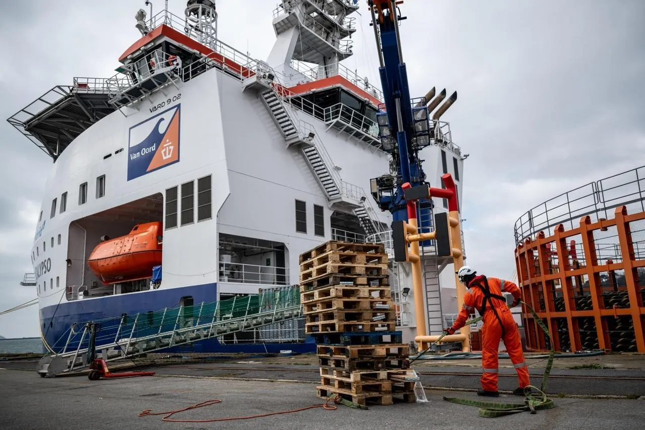 Avec 7000 tonnes de câbles embarqués, le navire câblier Calypso se prépare à une opération hors norme au large de Cléder (Finistère). Objectif : poser les premiers câbles sous-marins côté français, pour le projet Celtic Interconnector, une liaison électrique stratégique entre la France et l’Irlande.