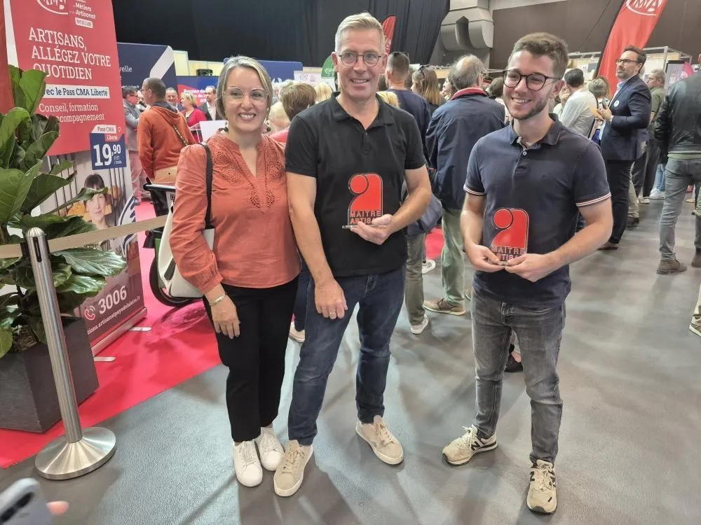 Lilian Mafray (au centre) a été nommé maître artisan dans la catégorie peintre décorateur. © Le Maine Libre
