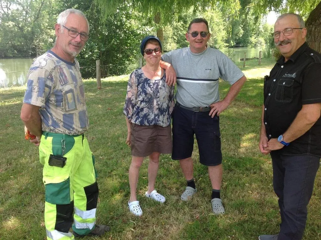 Accueillis par Dominique Agin (à gauche), Yvette et Daniel ont reçu mardi 31 mai la visite de Jean-Claude Rouillard, maire délégué de Ruillé. © Le Maine Libre
