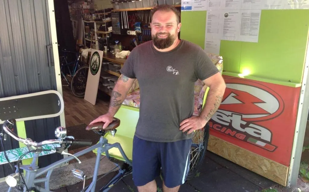 Romain Galpin, réparateur et loueur de cycles sur la voie verte, a été charge de procurer des vélos aux élus pour l’inauguration © Le Maine Libre