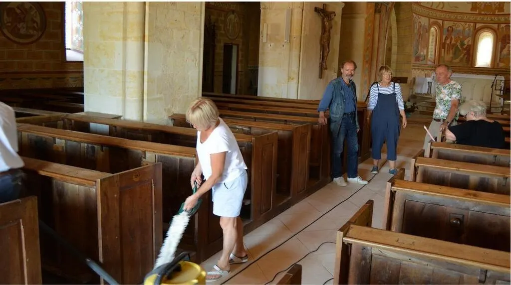 Leur mission du jour, le nettoyage en profondeur du superbe édifice restauré en 2021, ainsi que les objets liturgiques exposés. Armés d’un aspirateur, de balais, pelles, chiffons, éponges et produits ménagers, les volontaires se sont attelés à la tâche toute la matinée. Déjà , tous les bancs ont été entièrement cirés.  Il y a toujours beaucoup de toiles d’araignées,