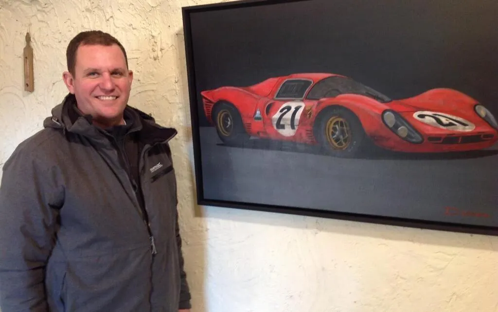 Olivier Champion exposait dans son chai une douzaine d’œuvres liées à la course automobile. © Le Maine Libre