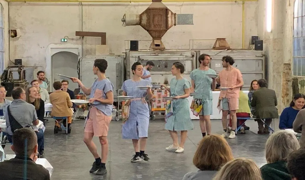 Le spectacle Puis-je vous servir ? a été joué dans les deux sites de programmation artistique par la compagnie AmieAmi avec Gang of food. Les artistes ont tout d’abord sollicité Seize spectateurs, devenus acteurs de la soirée, pour prendre place autour des quatre tables dressées. Ensuite, le cuisinier et ses serveurs danseurs ont servi un léger dîner végétarien à base notamment d’asperges, champignons et fraises. Le rythme virevoltant, l’humour, l’originalité du propos et les extraits musicaux percutants ont séduit les 80 spectateurs qui ont fait le déplacement à Paillard. « C’était génial. Ça donne envie maintenant d’être servi de cette manière quand on ira au restaurant », plaisante cette spectatrice qui assistait pour la première fois à un spectacle au centre d’art contemporain. Les artistes, en guise d’au revoir, ont, à l’issue de la représentation, servi au public un verre d’un vin local de la région nantaise.