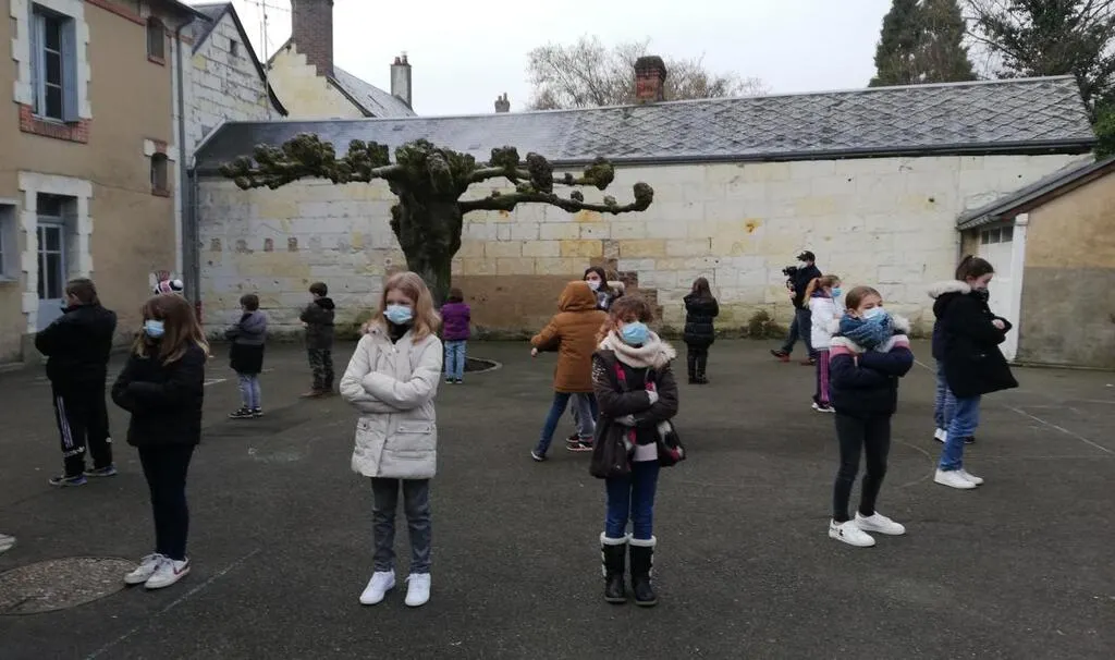 Les refrains ont été tournés avec tous les enfants dans la cour de l’école. © Le Maine Libre