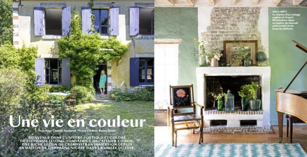 Le magazine Marie-Claire Idées vient de consacrer six pages dans son numéro de mars-avril à Stéphanie Lelong, graphiste et décoratrice de l’Atelier Citron, récemment installée dans la campagne de Ruillé-sur-Loir. La journaliste évoque une « maison ancienne et chaleureuse idéale […], presque hors du temps » et salue un « univers poétique et coloré […] en immersion depuis sa maison nichée en vallée du Loir. » Le reportage a été réalisé l’été dernier.