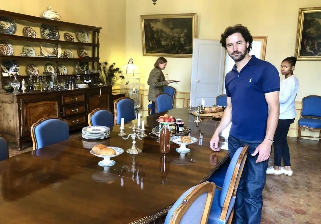 Pierre-Emmanuel Lecot, lors de l’ouverture du château au public, au printemps dernier. © Archives Le Maine Libre