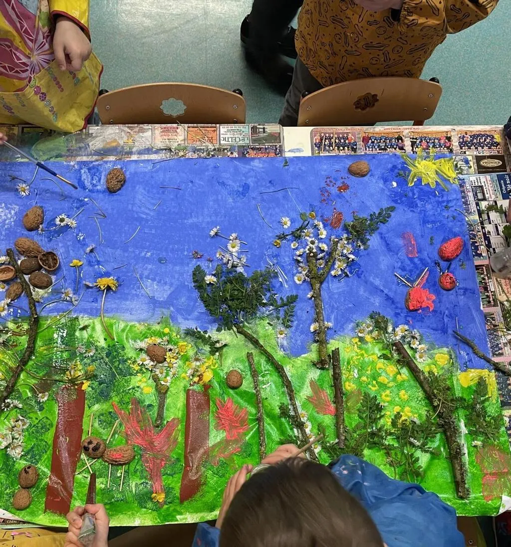 . Le cadre de l’école offre de nombreuses possibilités.  Nous avons des carrés potagers dont les contours en bois ont été teintés avec de l’encre végétale, des maisons à insectes ou encore un verger. Nous collaborons avec la cantine pour réduire les déchets et avons même un compost,Â
