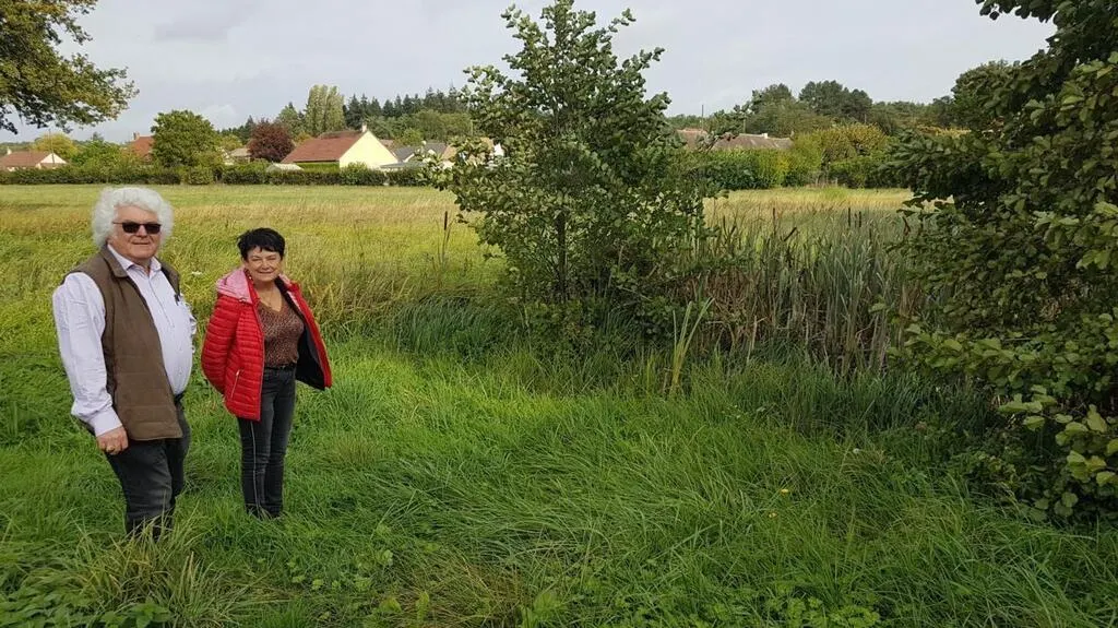 Alain Grémillon, maire, et Josette Trémier, adjointe à l’environnement, près de la mare de la future zone humide de l’Érabert. © Ouest-France