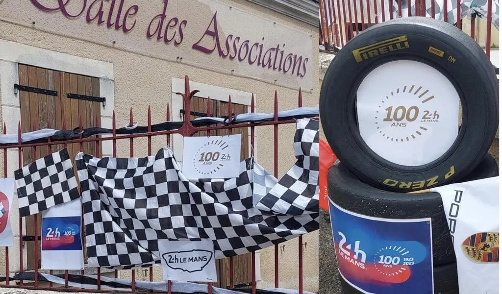 Le 15 mai dernier dans l’après-midi, la petite task force lombronnaise habituelle s’est mobilisée sur le terrain : Sylvie, Caroline, Xavier et l’adjointe Josette Trémier ont mis en place un nouveau décor sur les grilles devant la Maison des associations, sur le thème du centenaire des 24 Heures du Mans.