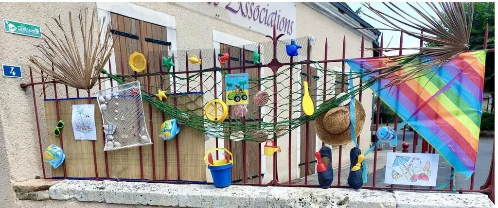 C’est désormais une tradition : les grilles situées en centre bourg, devant la salle des associations de Lombron, évoluent en décoration en fonction des grands moments de l’année. Une équipe se réunit ainsi autour de l’adjointe, Josette Trémier, avec les bénévoles Sylvie, Caroline, Jean-Claude (nouveau) et Xavier, la main verte de la commune. Ils ont d’abord retiré la décoration qui avait été installée préalablement, dans le cadre du centenaire des 24 Heures du Mans, pour installer la nouvelle. Elle entend célébrer l’été, avec un nouveau thème consacré aux vacances. Cela amène beaucoup de couleurs à cet endroit très passager puisque permettant l’accès aux commerces. Et c’est toujours fait avec du matériel de récupération apporté par les uns et les autres, chacun faisant ses fonds de placardsÂ