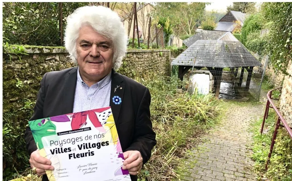 Le maire Alain Gremillon sur le chemin menant au lavoir, primé pour son fleurissement. © Le Maine Libre