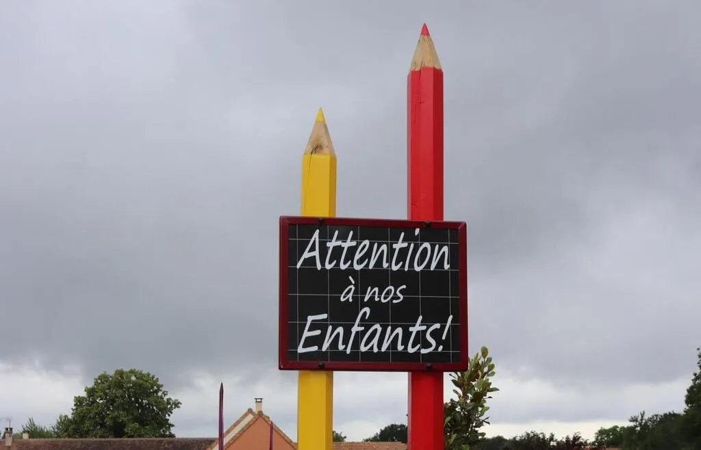 Lombron, la pose de crayons aux abords de l’école et de la mairie pour sécuriser le passage piéton. © Le Maine Libre