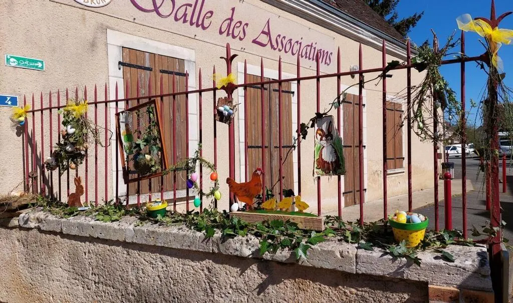 Une partie des grilles de la salle des associations de la commune décorées pour les fêtes de Pâques. © Ouest-France