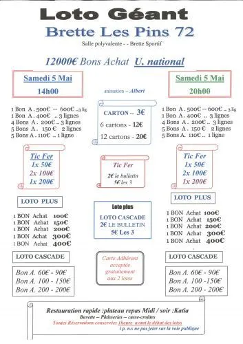 Loto de Brette Sportif - 12 000 euros à Brette-les-Pins... |