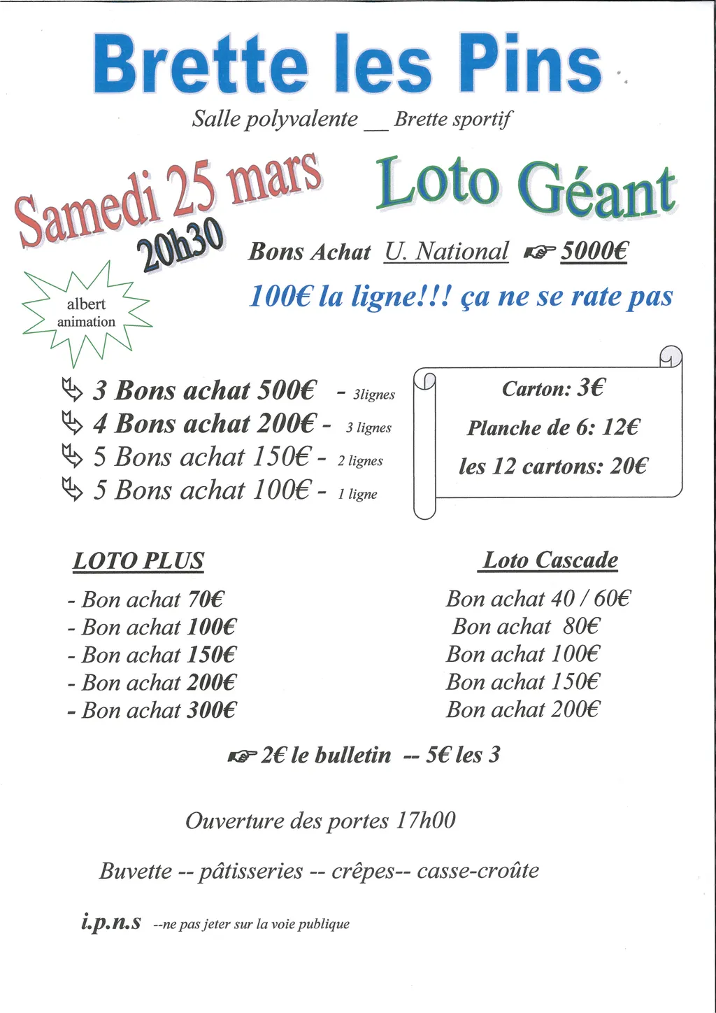 Loto Géant à Brette-les-Pins Organisé par BRETTE SPORTIF.