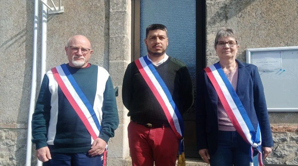 photo  jean de roffignac, nouveau maire du village élu à l’unanimité, entouré de ses adjoints alain guillin et patricia vallier.  ©  ouest-france 1