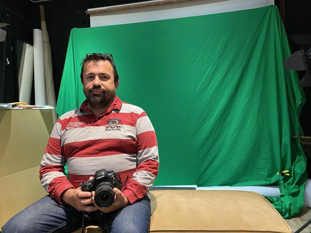 Christophe Serrare, réalisateur du documentaire « C’est qui un agri ? », dans son studio de photographie à Luché-Pringé (Sarthe), jeudi 30 juin 2022. © Ouest-France