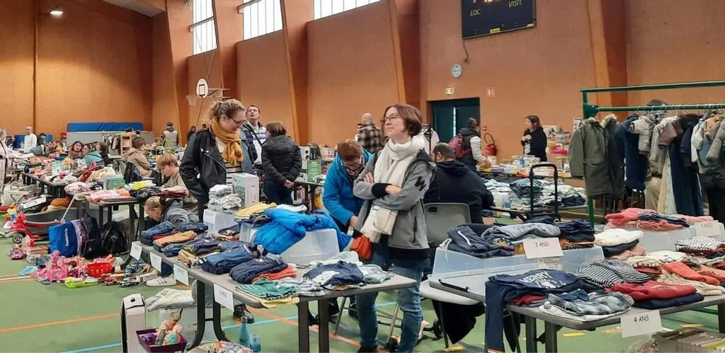 La salle d’exposition était bien remplie de multiples étals avec des vêtements, des jouets, des livres, des articles de puériculture et autres.