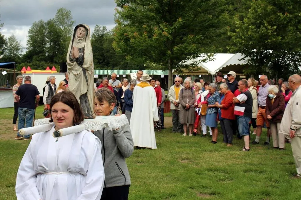 Notre-Dame de la Faigne s’apprête à entrer dans sa chapelle pour la messe qui sera célébrée à 10 h 30. © archives Le Maine Libre
