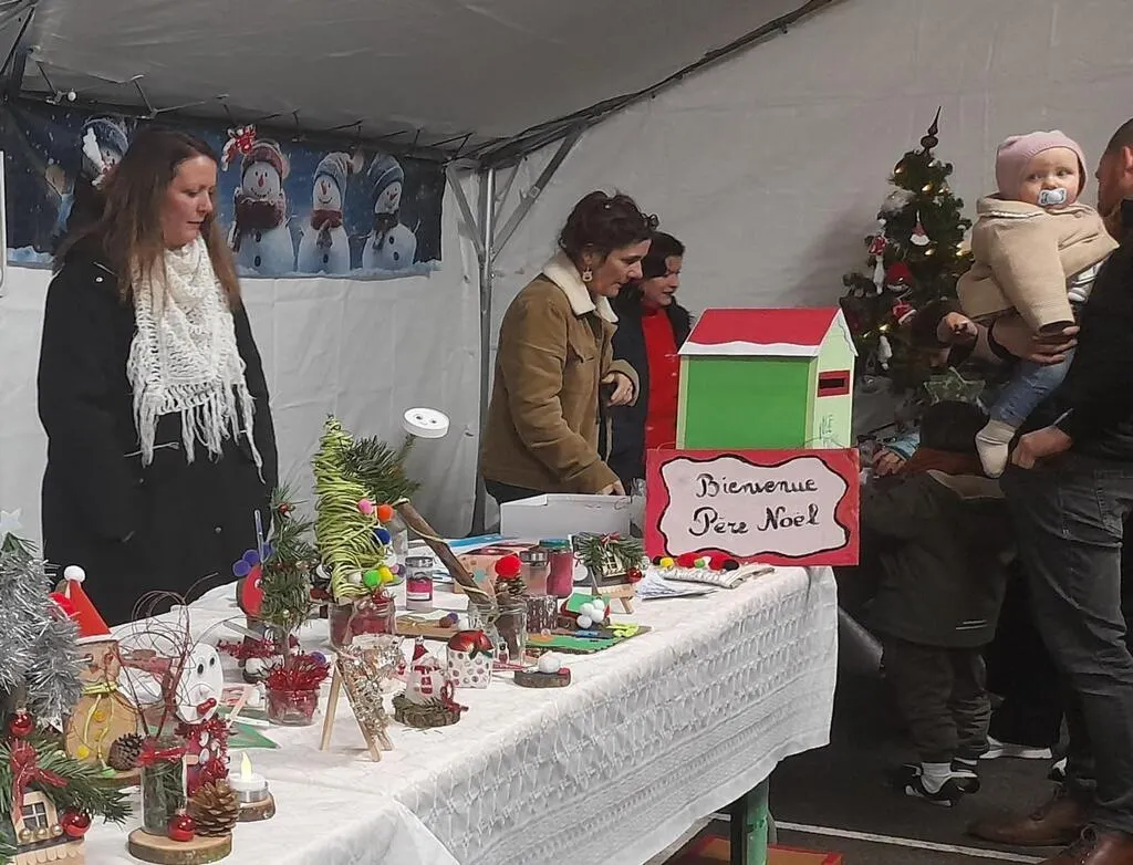 Un grand barnum, installé pour l’occasion, accueillait 25 exposants, beaucoup d’artisans et de créateurs locaux, c’est la première fois que nous organisons ce marché et nous sommes satisfaits, il y a du monde, c’est encourageant. Le Père Noël sera présent et 35 enfants se sont inscrits à la chorale pour chanter des chants de Noël. Nous proposons des crêpes et une tartiflette, du vin chaud, enfin tout ce que l’on retrouve dans un marché de NoëlÂ