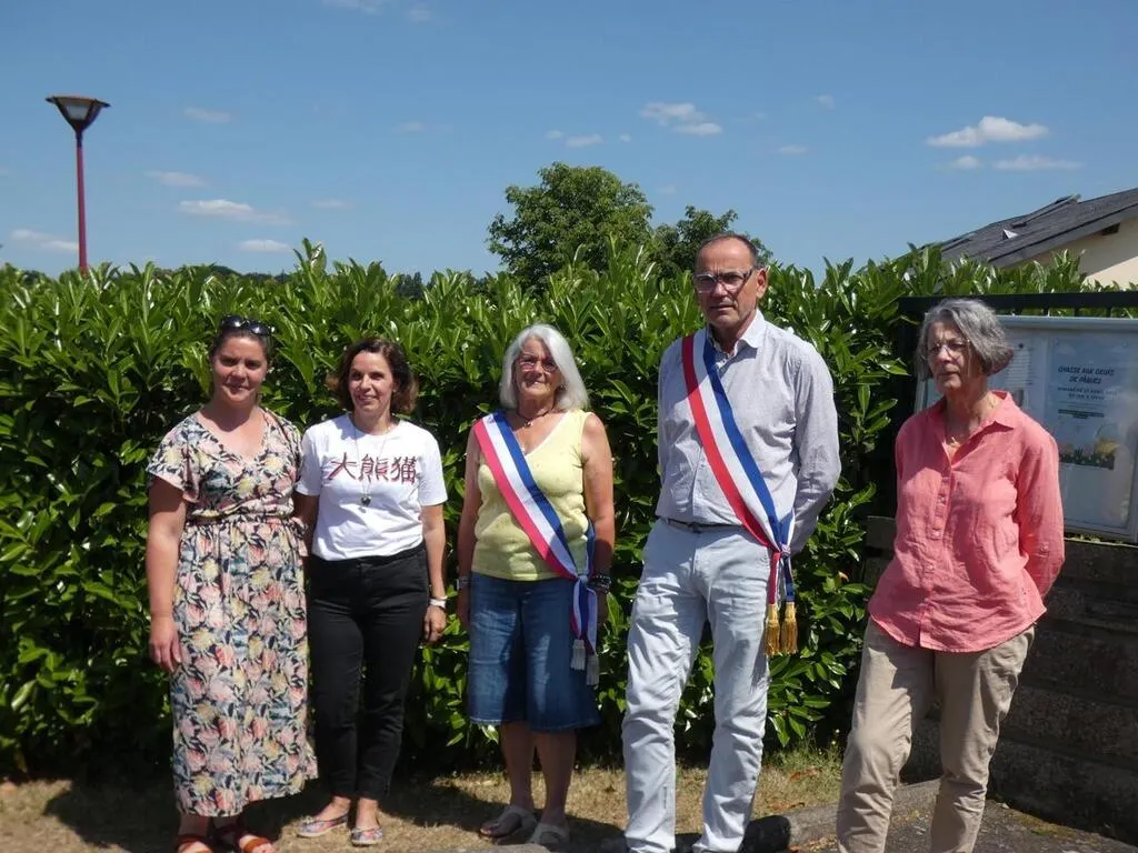 Les deux représentantes des parents d’élèves, Lucie Leroy et Mélanie Bertrand à gauche, avec Jean-Claude Moser, maire, Valérie Huart, adjointe, et Katherine Marzys, représentante de la fédération des délégués départementaux de l’Éducation nationale sont tous solidaires et défendent le maintien de huit classes pour la rentrée. © Le Maine Libre