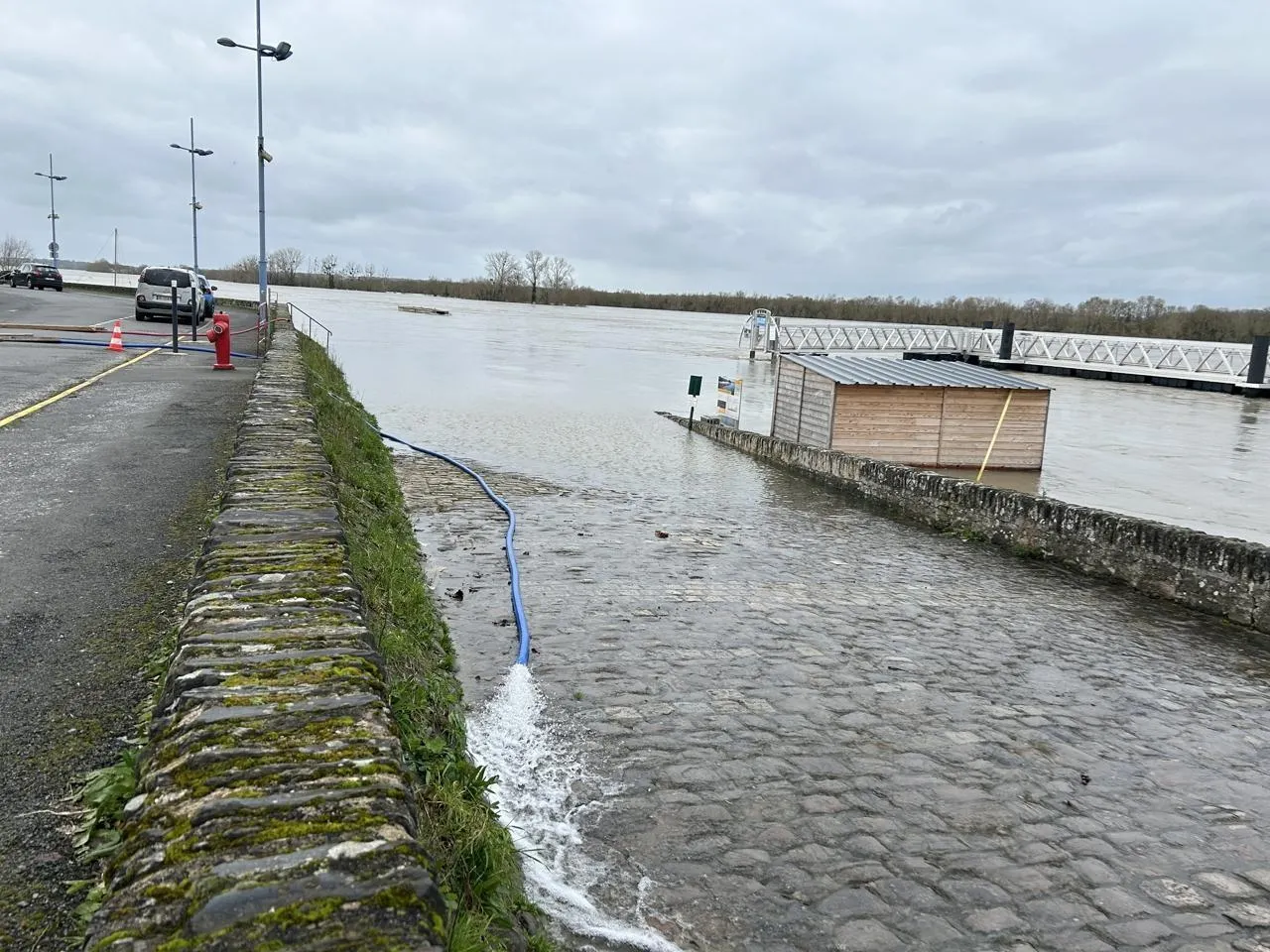 Pour l’instant, seul Montjean-sur-Loire, est concerné par des actions de pompage de ce type. C’est même plutôt une première, assure Corentin Dourmap, chargé de communication à la Protection civile. Les crues aussi fortes sont exceptionnelles et on a n’a pas forcément l’habitude de ce genre de comportement de la part du fleuve. Ses agents interviennent dans le cadre d’une convention passée avec la commune de Mauges-sur-Loire dans le cadre de son plan communal de sauvegarde. Ils se relaient jour et nuit pour assurer que les pompes restent efficaces en permanence, et ce pour une durée indéterminée, jusqu’à la décrue.