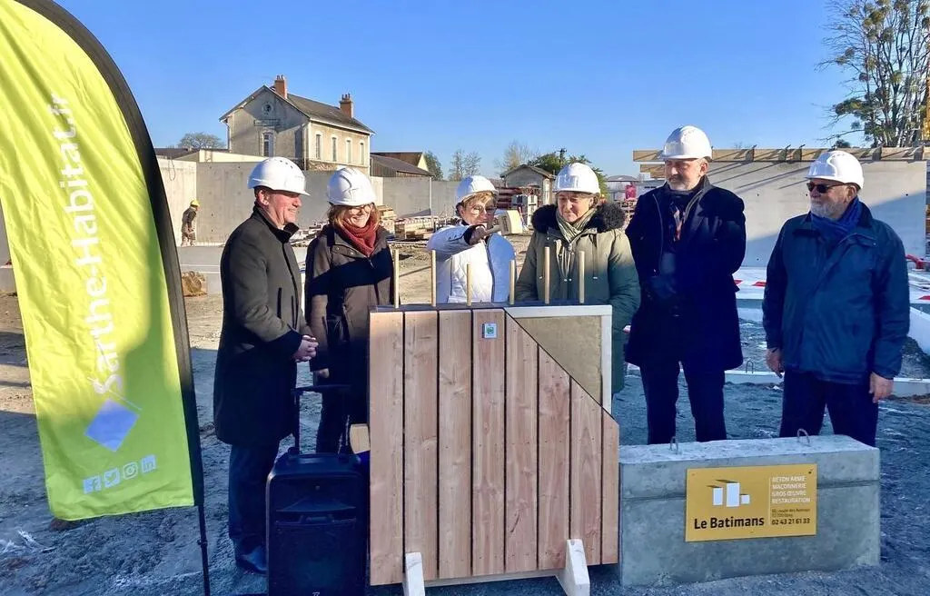 La cérémonie de la première pierre s’est déroulée vendredi 19 janvier 2024 : douze logements de Sarthe Habitat sont en cours de construction près de l’ancienne gare, à Malicorne-sur-Sarthe. Ils ont été pensés pour un public senior.