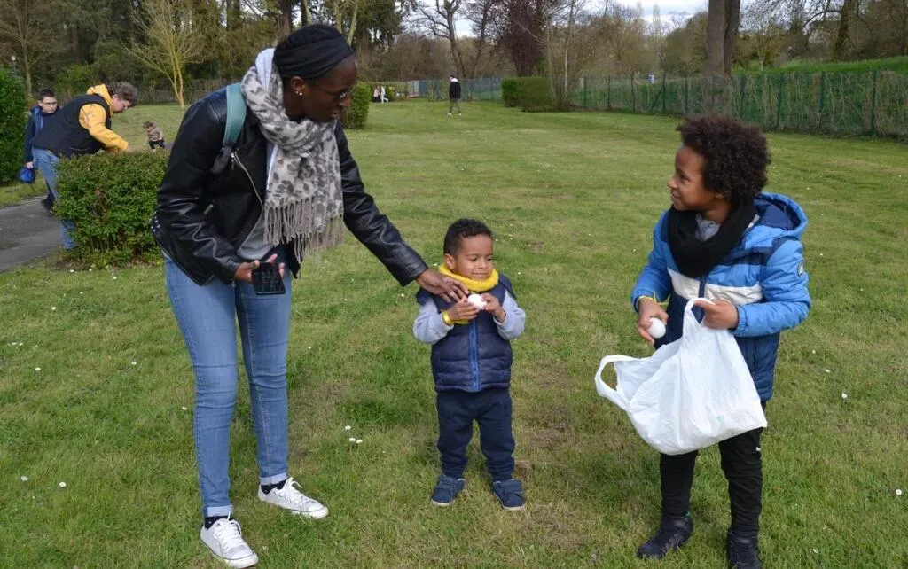 Bien aidée par maman, la chasse aux Å“ufs a été bonne. © Le Maine Libre