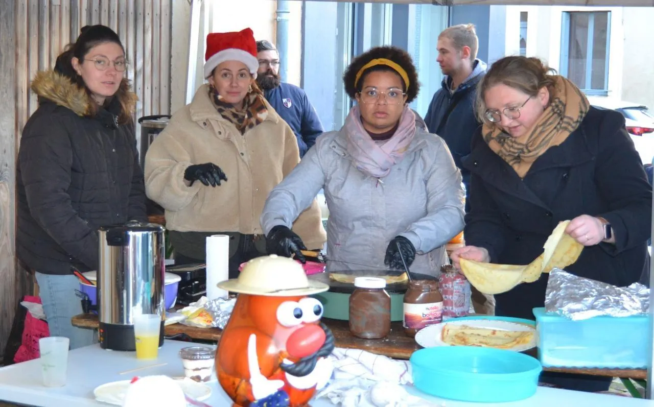 Même en se relayant personne n’a chômé aux crêpes, gâteaux et vin chaud. © Le Maine Libre