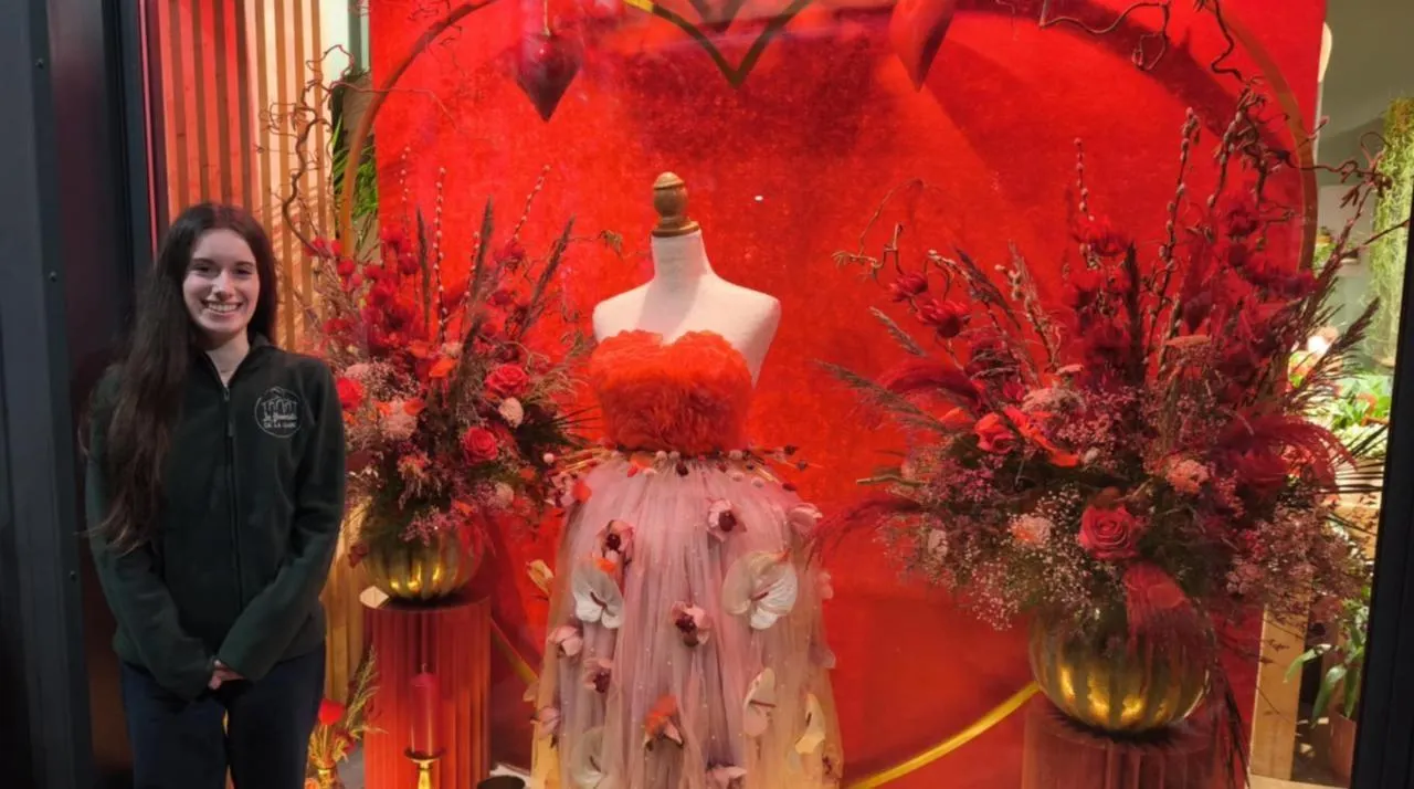 Albane Pastureau a 17 ans et est originaire de Tassé, dans la Sarthe. La jeune femme a mis onze jours pour réaliser ce magnifique décor, mettant à l’honneur la Saint-Valentin, dans la vitrine de Kévin Grudé, Le Fleuriste de la gare.
