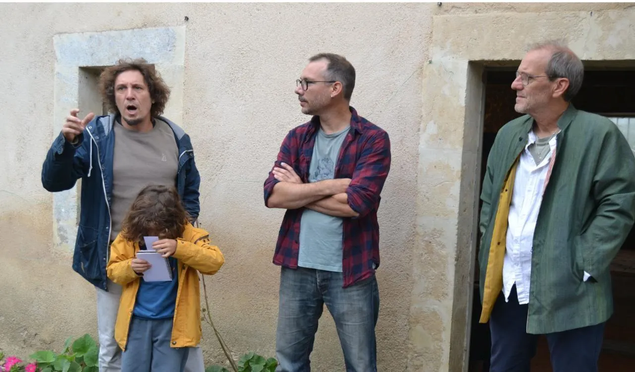 À l’entrée du magnifique rez-de-chaussée du moulin les trois artistes expliquent leur travail. © Le Maine Libre