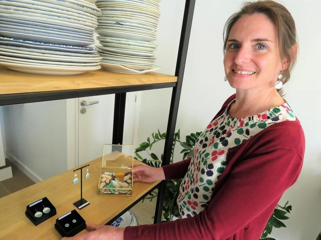 . Les gens peuvent poser des questions et découvrir les étapes de la création des bijoux à partir de pièces découpées dans une assiette ou d’un fragment de faïences locales anciennes