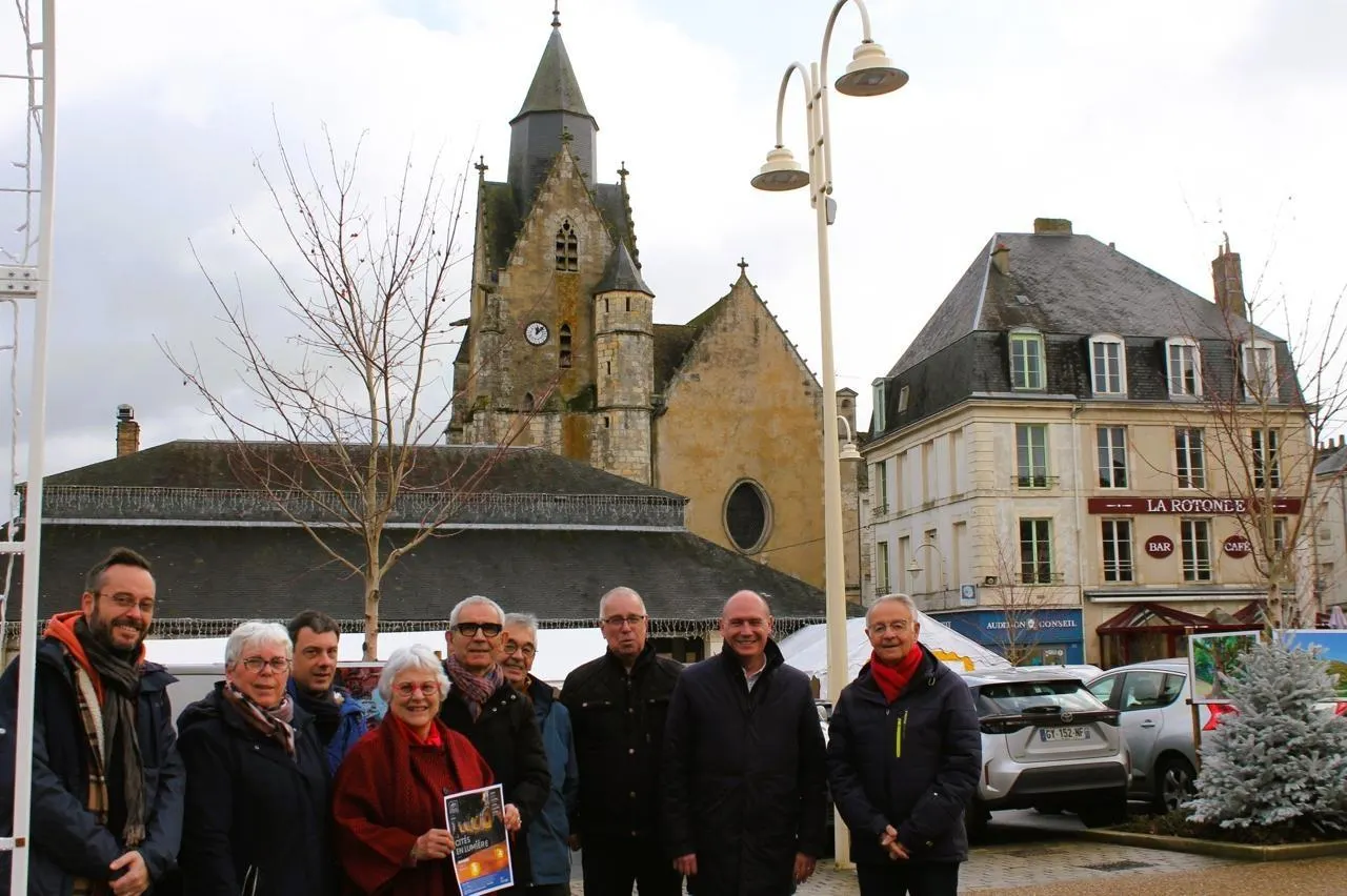 Devant l’église Saint-Nicolas, les bénévoles et les élus se préparent pour cette belle manifestation qui se déroulera samedi 13 décembre 2025 à partir de 17 h 30. © Le Maine Libre